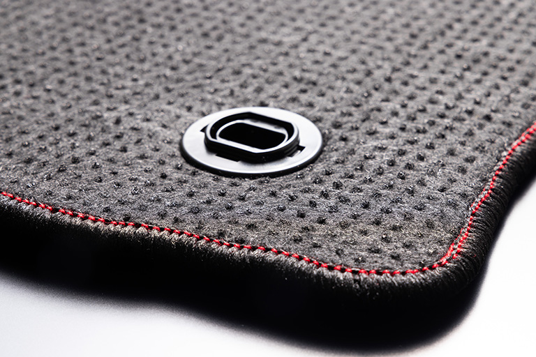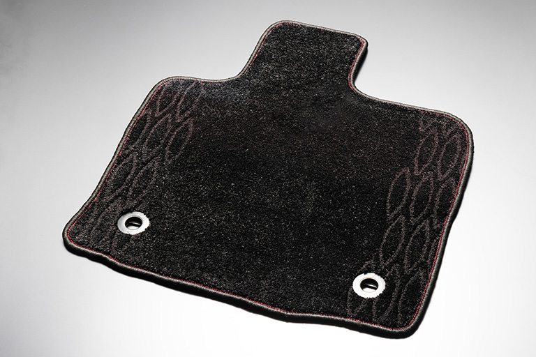 ヒール部にヒールパットは使用せず、糸の使用量を2倍としたダブルタフト仕様とすることで、耐久性も併せ持つ特別なフロアマットです。