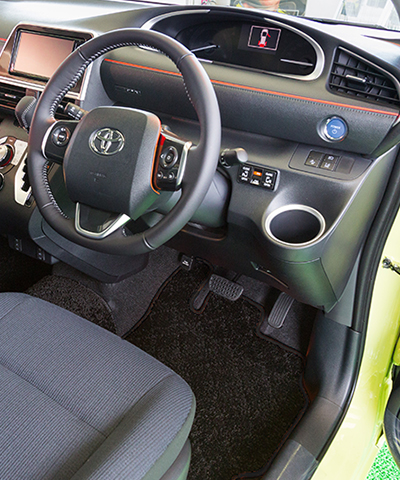 新型シエンタのイメージカラー「エアーイエロー」と内装のポイントカラー「オレンジ」を縁取りに使用した特別なマットもご用意しました。